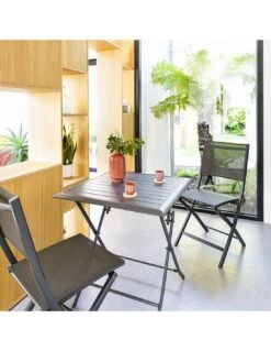 Table De Jardin Azua Pliante Carrée 2 Places – Aluminium – Gris Smoke Plateau Ect Effet Bois